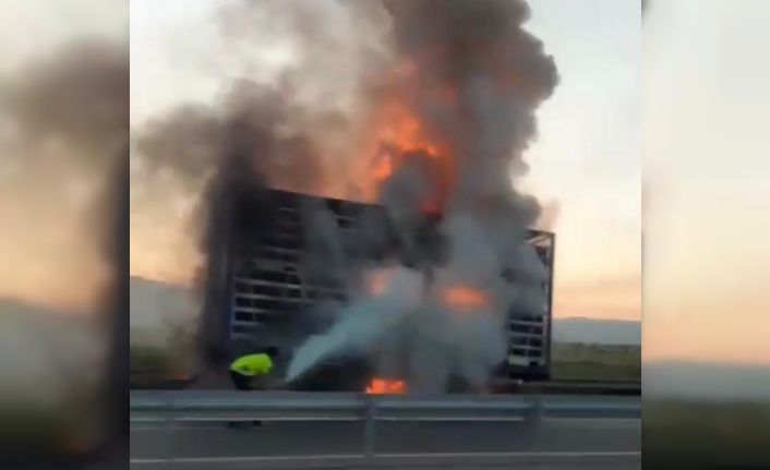 Manisa’nın Alaşehir ilçesinde tavuk yüklü iki dorse ile seyir halindeyken sondaki dorsenin tekerinin alev alarak yanmaya başladığı tırın sürücüsü dorseyi tırdan çıkararak diğer dorsenin de yanmasını engelledi. Olayda dorsede bulunan 1500 tavuk telef oldu.
