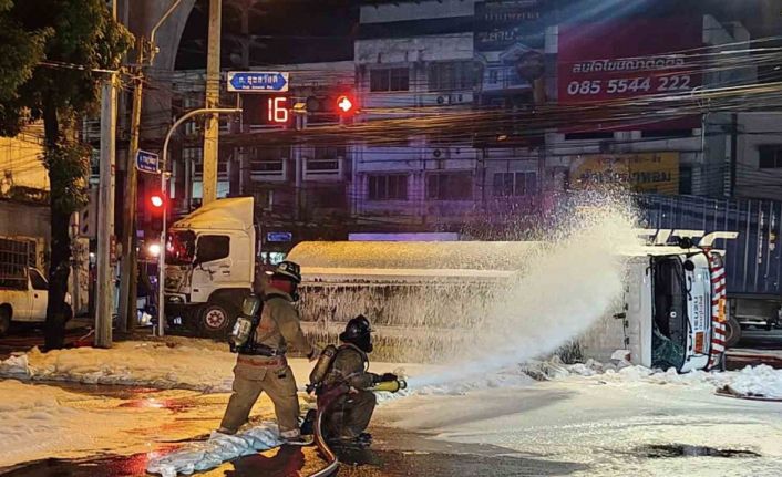 Tayland’da akaryakıt tankerinin karıştığı kazada faciadan dönüldü. Başkent Bangkok’un Rat Burana ilçesinde, çok sayıda ev ve işyerinin bulunduğu bir sokakta yerel saatle 00.02’de konteyner yüklü bir tır ile akaryakıt tankerinin çarpıştı. Kazada, 16 bin litre akaryakıt taşıdığı tespit edilen tanker yan devrilirken, 600 litre benzin yola döküldü.