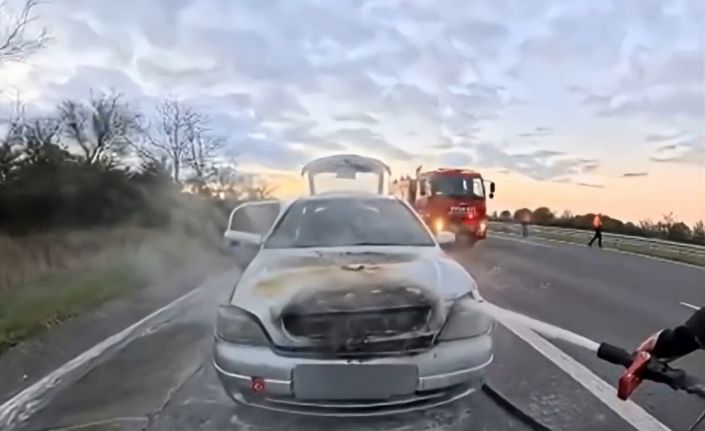 Tekirdağ-Kırklareli sınırında araç yangını: Ekipler zamanla yarıştı