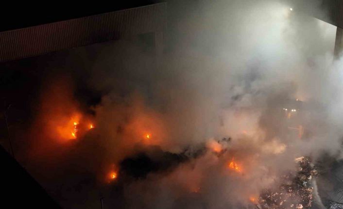 Yangın esnasında olay yerine çağırılan 3 iş makinesi ise, alevlerin arasından geri dönüşüm atıklarını çıkararak yangının daha fazla büyümesini engelledi.