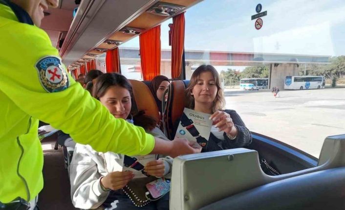 Ayrıca şehirlerarası yolcu taşımacılığı yapan firmaların yetkilileri ve personeline yönelik bilgilendirme çalışması yapıldı. Trafik ekipleri, otobüs yolcularına emniyet kemeri kullanımının önemini anlatarak güvenli yolculuk için kurallara uyulması gerektiğini vurguladı.