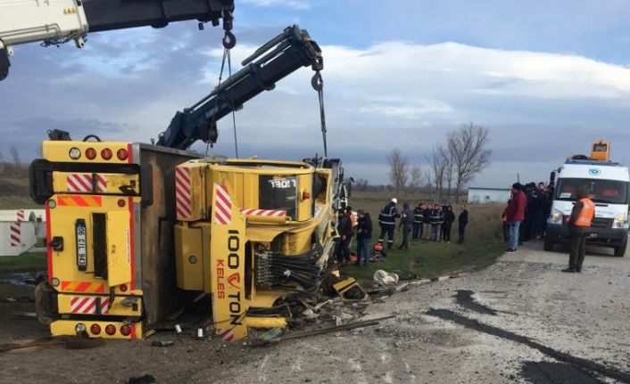 Tekirdağ’da bir vinç kamyonu, sürücüsünün direksiyon hakimiyetini kaybetmesi sonucu devrildi. Kaza sonucu araca sıkışan vinç sürücüsü hayatını kaybetti.