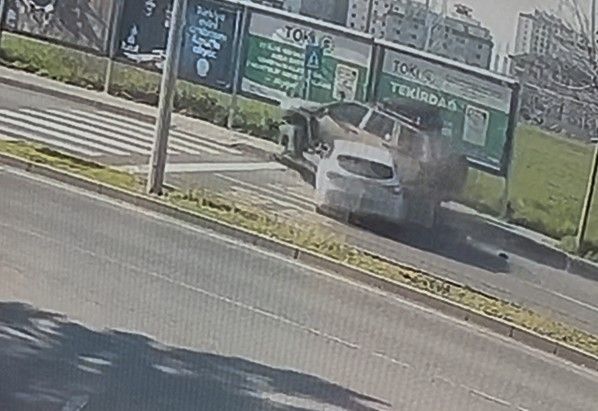Tekirdağ Çorlu’da otomobilin park halindeki cipe çarptığı kaza anı kameraya yansıdı.