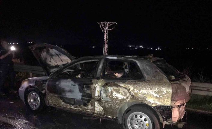 Tekirdağ’ın Muratlı ilçesinde hareket halindeki bir otomobil yanarak hurdaya döndü.