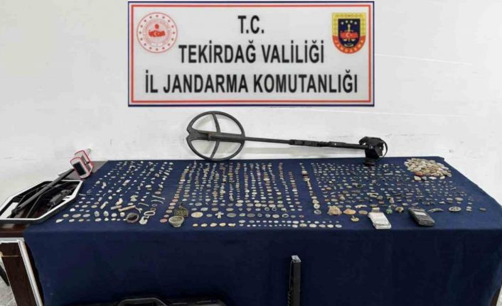 Tekirdağ İl Jandarma Komutanlığınca yürütülen istihbari çalışmalar sonucu, Çorlu ilçesi Nusratiye Mahallesi’nde M.C., İ.C. ve D.E. isimli şüphelilerin ikamet adresleri ile araçlarında eş zamanlı operasyon gerçekleştirildi. Tekirdağ İl Jandarma Komutanlığına bağlı İstihbarat Şube Müdürlüğü, Ergene Velimeşe Jandarma Karakol Komutanlığı ve Ulaş Jandarma Karakol Komutanlığı ekiplerinin ortaklaşa yürüttüğü operasyonda yapılan aramalarda, tarihi eser niteliği taşıyan toplam 1014 adet sikke ve obje, 3 adet dedektör ile tarihi eser objeleri tartmak için kullanıldığı değerlendirilen 1 adet hassas terazi ele geçirildi.