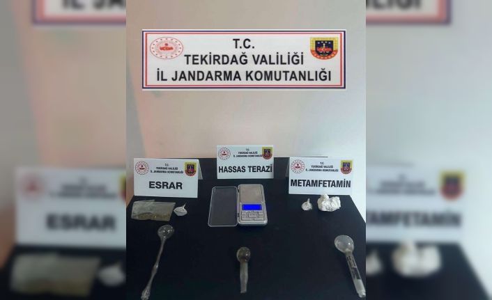 Süleymanpaşa 100.Yıl Mahallesinde ikamet eden T.K. isimli şahsın uyuşturucu madde bulundurduğunun tespiti üzerine Tekirdağ İl Jandarma Komutanlığı ekiplerince şahsın ikametinde yapılan aramada yaklaşık 3 gram metamfetamin, 2 gram esrar, dijital hassas terazi ve 4 adet uyuşturucu kullanma aparatı ele geçirildi. Şüpheli ile birlikte ikamette bulunan toplam 4 kişi gözaltına alındı.