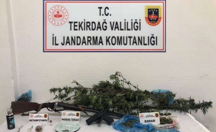 Malkara ilçesinde de A.A.’nın uyuşturucu sattığı bilgisi üzerine jandarma ekipleri çalışma başlattı. Aramalarda, 220 gram kubar esrar, 1 adet yivsiz av tüfeği, 2 adet kenevir, 0.1 gram metamfetamin, hassas terazi, uyuşturucu aparatı ve kuru sıkı tabancalar ele geçirildi. Olayla ilgili işlem başlatılarak şüpheli gözaltına alındı.