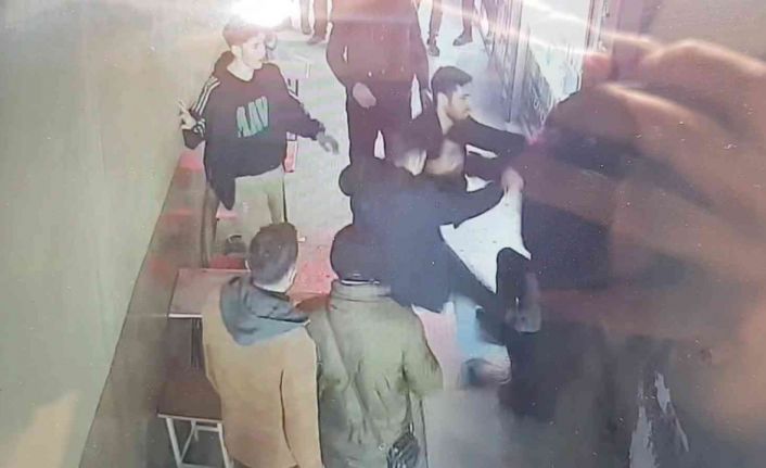 Karabük Belediyesi’nin 4. katında bulunan çay ocağını işleten B.K. ve E.K. iş yerinin önceki işletmecisi olan E.A. ve Ş.A. ile karşılaştı. Burada iş yerinin devredilmesi konusunda tartışmaya başlayan iki grup bir anda birbirine girdi. Tekme ve tokatların havada uçuştuğu kavga anı ise bir işyerinin güvenlik kamerasına anbean kaydedildi.