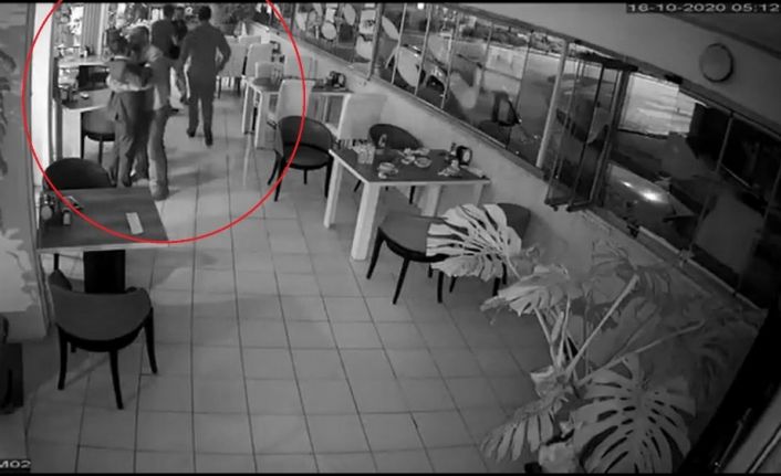 İş yerinin güvenlik kamerasına yansıyan kavgada masa ve sandalyelerin dağıldığı, arbedenin mutfak bölümüne de taştığı görülüyor.