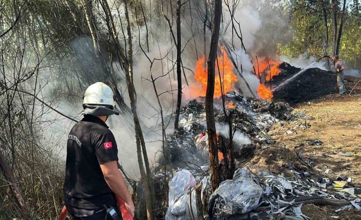 Düzce’nin Çilimli ilçesinde tekstil atıklarında çıkan yangın ormana sıçradı. Ekiplerin yoğun çalışmasıyla yangın güçlükle söndürüldü.