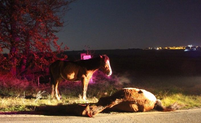 Silivri’de plakası alınamayan bir aracın çarptığı at olay yerinde telef oldu. Telef olan arkadaşının yanından saatlerce ayrılmayan at yürekleri burktu.