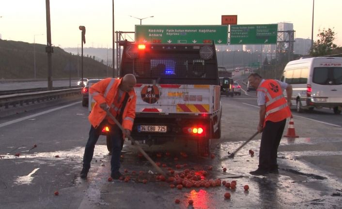 Kamyonda bulunan onlarca kasa domates yola döküldü. Polis ekipleri tarafından trafik akışı tek şeride düşürülerek olay yerine vinç aracı sevk edildi. Devrilen kamyonet vinç yardımıyla yoldan kaldırılırken yaralılar kontrol amaçlı hastaneye kaldırıldı.