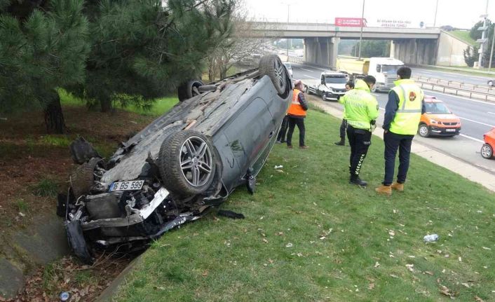 Sancaktepe TEM Otoyolunda direksiyon hakimiyetini kaybeden sürücü, önce başka bir araca ardından yağmur suyu kanalının duvarına çarparak takla attı. Otomobil sürücüsü, ters dönen lüks otomobilden yara almadan kurtuldu.