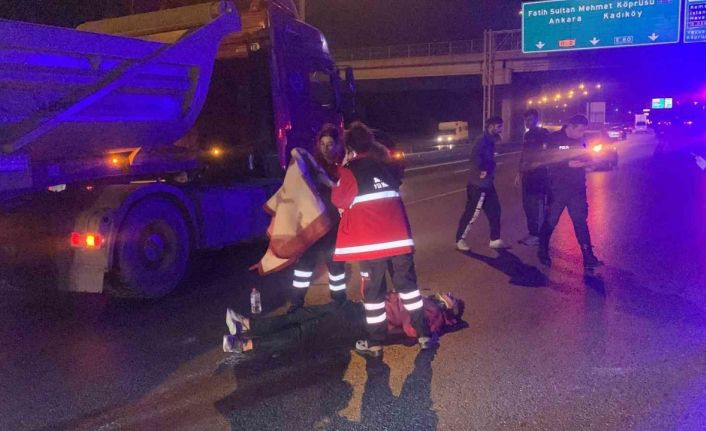 TEM’de akılalmaz kaza: Şakalaşırken motosikletten düştüler