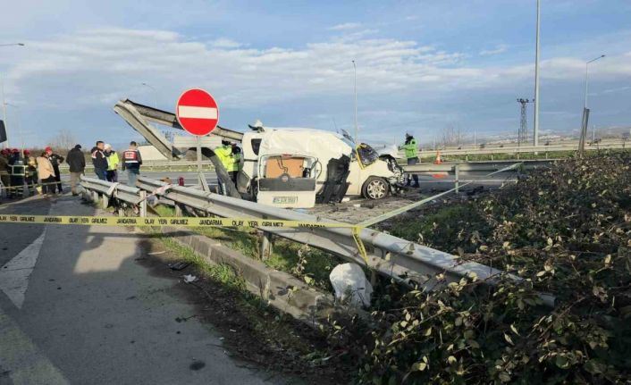 TEM Otoyolu’nun Düzce geçişinde bariyerlere ok gibi saplanan hafif ticari araçtaki 2 kişi olay yerinde hayatını kaybetti.