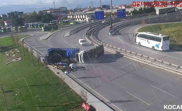 TEM Otoyolu Kocaeli geçişinde 8 Kasım’da hurda yüklü kamyon devrilmişi. Kaza anının kamera görüntüsü ortaya çıktı.