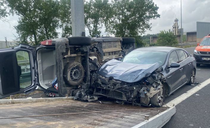 TEM Otoyolu Kocaeli geçişinde otomobil ile çarpışan hafif ticari araç yan yattı, araçlarda bulunan 4 kişi ise kazayı hafif sıyrıklarla atlattı.