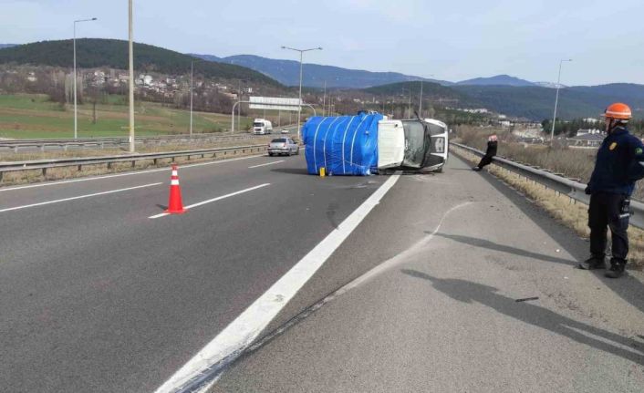 Bolu’da TEM Otoyolu’nda seyir halindeyken kontrolden çıkan kamyonet devrildi.