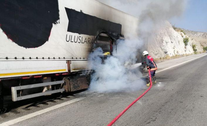 Sürücünün durumu fark ederek aracı güvenlik şeridine çektiği olay esnasında, alevler dorse kısmında bulunan kükürte sıçradı.