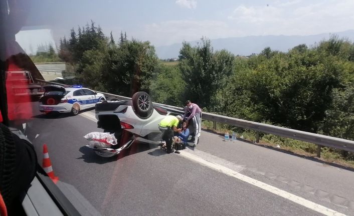 TEM’de park halindeki otomobile çarpan araç takla attı: 1 yaralı