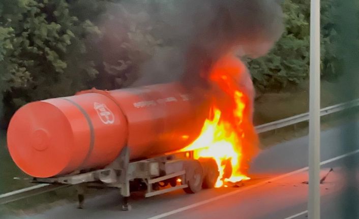 Sultanbeyli’de TEM Otoyolu’nda seyir halindeki çöp kamyonu alev alev yandı. İçi çöp dolu olan kamyon, itfaiye ekipleri tarafından söndürüldü.
