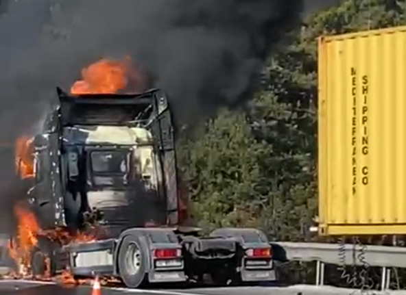 TEM Otoyolu’nun Bolu geçişinde seyir halindeki bir tır alevlere teslim oldu. Tırın dorsesi, bölgeden geçen bir oto kurtarıcının yardımıyla yanmaktan son anda kurtarıldı.