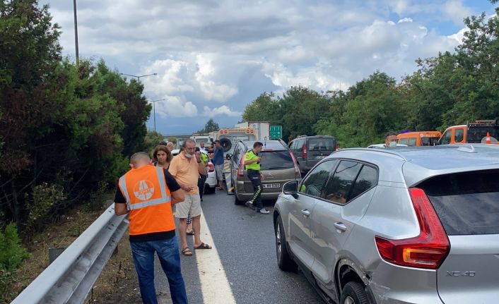 DÜZCE (İHA) – TEM Otoyolu Düzce geçişinde sağanak yağış kazalara sebep oldu. 5 ayrı noktada meydana gelen trafik kazalarına 15 araç karışırken, 12 kişi de yaralandı.