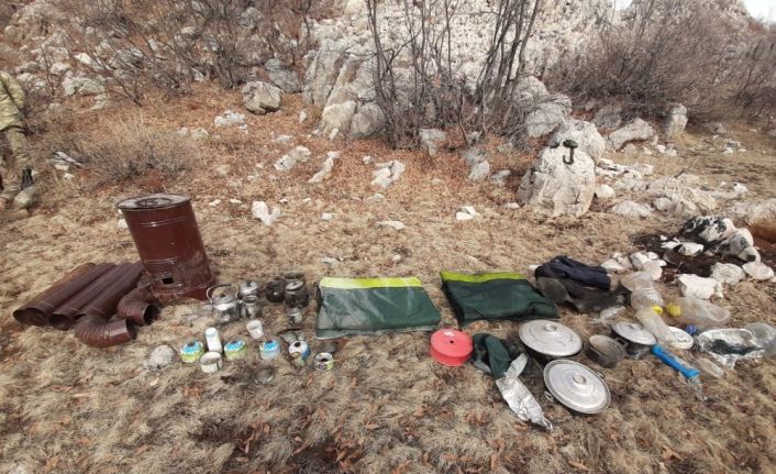 Malatya’da, terör örgütü mensuplarının 6-7 yıl önce kullandıkları, kayaların arasına gizlenmiş şekilde çeşitli yaşam malzemeleri ele geçirildi.