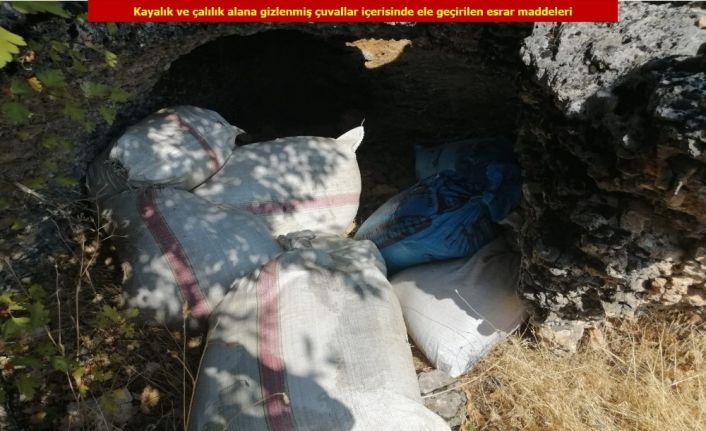 Diyarbakır İl Jandarma Komutanlığı ekipleri tarafından alınan bir istihbarat üzerine yapılan çalışmalarda Lice ilçesi kırsalında kayalıkların içine çuvallarla gizlenmiş vaziyette 158 kilo esrar maddesi ele geçirildi.