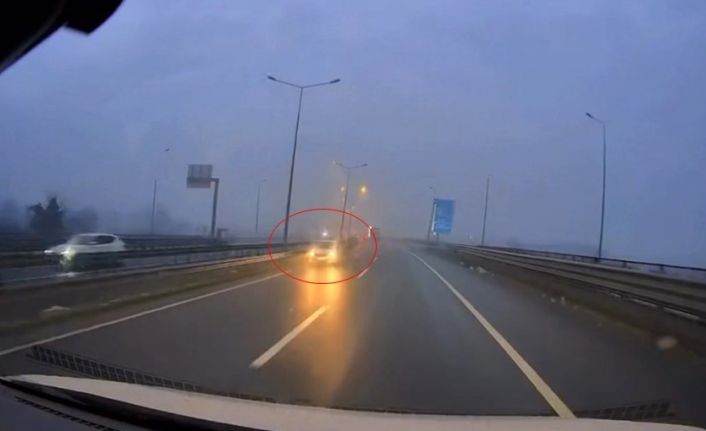Düzce’de ters şeritte hızla ilerleyen otomobil, karşı yönden gelen araçla kafa kafaya çarpıştı. Savrulan otomobilin minibüse de çarptığı ve şans eseri yaralananın olmadığı kaza anı, araç kamerasınca saniye saniye kaydedildi.