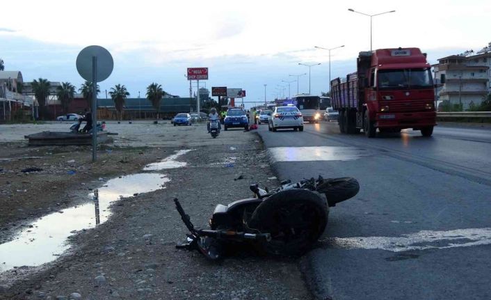 Antalya’nın Manavgat ilçesinde ters yönden gelen traktörün römorkuna çarpan motosikletin sürücüsü ağır yaralandı. Hastaneye kaldırılan motosiklet sürücüsünün hayati tehlikesinin bulunduğu öğrenildi.