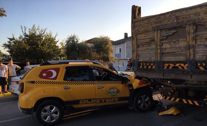 Kocaeli’nin Gebze ilçesinde ticari taksi, durağa yanaşmakta olan kamyona arkadan çarptı. Kazada taksi sürücüsü yaralanarak hastaneye kaldırıldı.