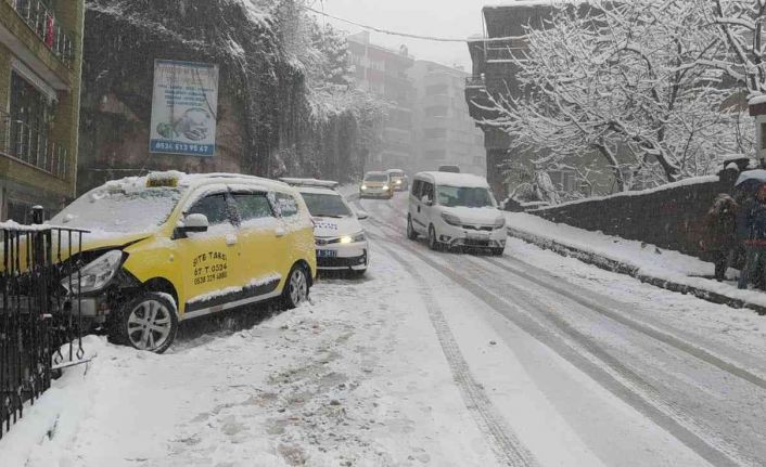 Zonguldak’ta kar yağışı nedeniyle sürücüsünün kontrolünden çıkan ticari taksi bir apartmanın girişine çarparak durabildi. Kazada bir kişi yaralandı.