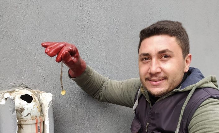 Manisa’nın Alaşehir ilçesinde tıkalı bir su giderini açmak için çağrılan su tesisatçı, tıkalı boruda bulduğu çeyrek altınlı bilekliği sahibine teslim ederek örnek bir davranışa imza attı. Borudan çıkan çeyrek altınlı bilekliğin bir yıl önce düşürüldüğü öğrenildi.