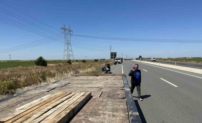 Tekirdağ’ın Muratlı ilçesinde tır dorsesinden düşen kalasa çarpan motosikletin sürücüsü yaralandı.