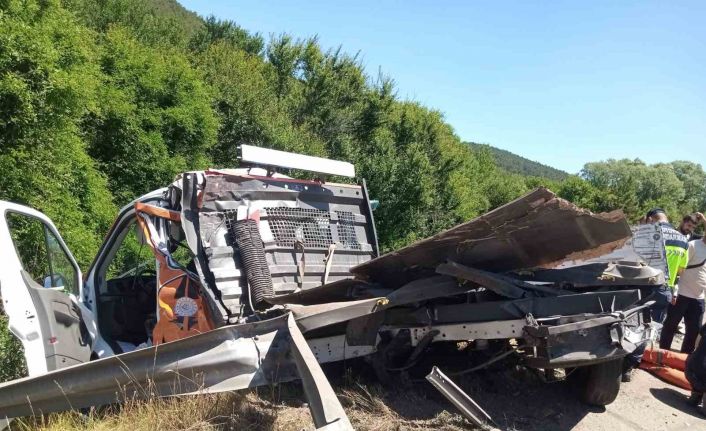 Bolu’da TEM Otoyolu’nda, seyir halindeki tırın yol kenarında duran yol bakım aracına çarpması sonucu meydana gelen kazada 2 kişi yaralandı.
