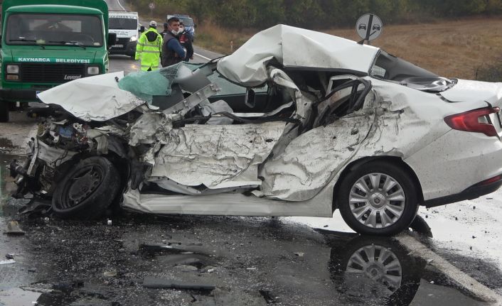 Pınarhisar ilçesinde tır ile çarpışan otomobilin sürücüsü sıkışarak can verdi.