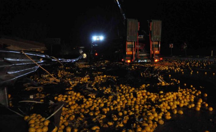 Edinilen bilgiye göre, kaza, Mersin-Silifke D-400 karayolunda meydana geldi. Semih A. yönetimindeki 50 US 494 plakalı tır, Mersin’den yüklediği 40 ton limonu Antalya’ya götürmek üzere seyir halinde iken Silifke ilçesi Kabasakallı mevkiinde plakası ve sürücüsü henüz belirlenemeyen kum yüklü kamyona çarptı. Çarpmanın etkisi ile bariyerlere çarpan tırın şoförü, kazada şans eseri yara almadan kurtulurken araçta bulunan 40 ton limon ise yola savruldu.