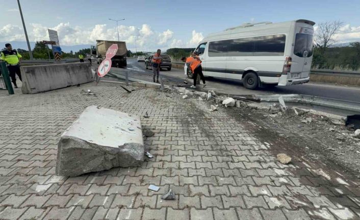 Düzce’de inşaat atığı taşıyan tır, Karayolları 4. Bölge Müdürlüğü binasını teğet geçerek 1 tonluk bloklara çarptı. Kaza maddi hasarla atlatıldı.