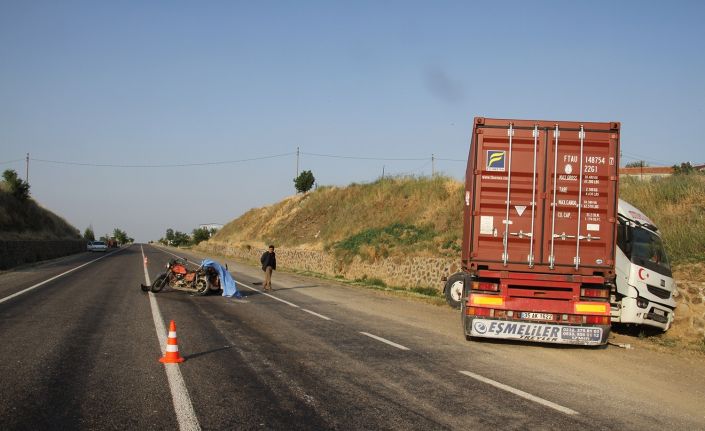 Manisa’nın Kula ilçesinde seyir halindeki bir tır, tali yoldan karayoluna çıkmak isteyen sepetli motosiklete çarptı. Çarpışmanın şiddetiyle tır kontrolden çıkarak duvara çarparken, savrulan motosiklet sürücüsü ise olay yerinde hayatını kaybetti.