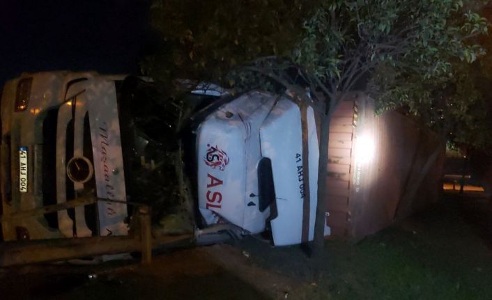 Kocaeli’nin Dilovası ilçesinde kavşağa girerken tır sürücüsünün hızını alamaması sebebiyle araç yan yattı. Şoför yaralanırken trafikte kısa süreli aksaklık yaşandı.