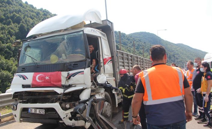Kaza, saat 15.00 sıralarında TEM Otoyolu Bolu Dağı geçişi Ankara yönünde meydana geldi. Edinilen bilgiye göre, Ankara istikametine seyir halinde olan Samet Çalış idaresindeki 06 DB 8212 plakalı kamyon, önünde ilerleyen Candan Azgın yönetimindeki 01 C 1711 plakalı tıra çarptı. Kazada, kamyon sürücüsü Çalış, ön kısmı hurdaya dönen kamyonda sıkıştı. İhbar üzerine olay yerine 112 Sağlık, itfaiye ve polis ekipleri sevk edildi. Sol ayağında kırıklar oluşan Çalış, ekiplerin yaklaşık 1 saatlik çalışması sonucu kurtarıldı. Olay yerinde ilk müdahalesi yapılan sürücü Düzce Devlet Hastanesi’ne götürüldü.