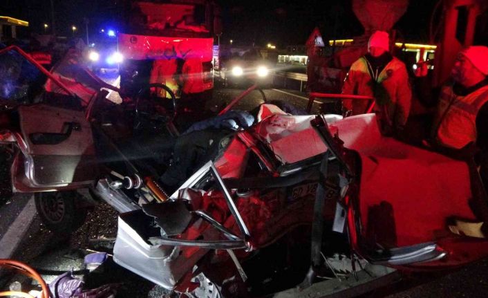 Tıra çarpan otomobil kağıt gibi ezildi: 2 ölü, 1 yaralı