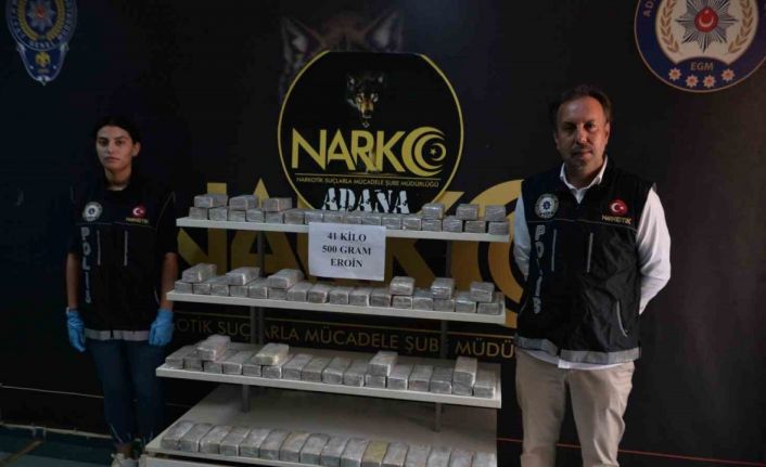 Adana İl Emniyet Müdürlüğü Narkotik Suçlarla Mücadele Şube Müdürlüğü ekipleri, Mersin Tarsus-Adana-Gaziantep (TAG) Otoyolu’nda uygulama yaptı. Polis, kendilerini görünce uygulama noktasına girmeyip, yol kenarına park eden yabancı plakalı tırın durumundan şüphelendi. Noktaya çekilen tırın sürücüsü Bülent Y. (51) de şüpheli hareketler sergileyince, dorsede narkotik dedektör köpek ‘Hulk’ ile arama yapıldı. Hulk’un, dorsenin soğutma sistemine tepki vermesi üzerine yapılan detaylı aramada 41 kilo 500 gram eroin bulundu.
