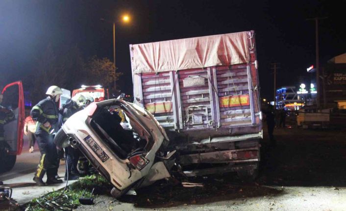 Kocaeli’nin İzmit ilçesinde seyir halindeki otomobil, park halindeki tıra arkadan ok gibi saplandı. Çarpışmanın şiddetiyle tırın arkasında sıkışan otomobilde bulunan 3 kişi hayatını kaybetti.