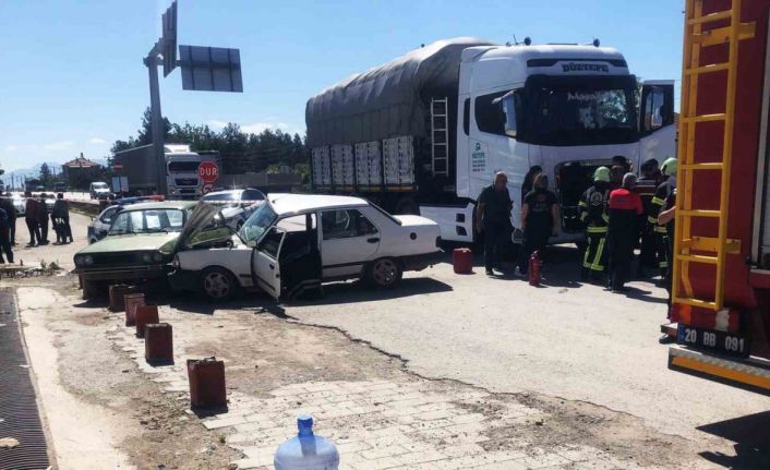 Denizli’nin Bozkurt ilçesinde kavşaktan ana yola çıkan otomobile tır çarptı. Çarpmanın etkisiyle park halindeki araca çarpan otomobildeki yaşlı kadın hayatını kaybederken, koca ağır yaralandı.