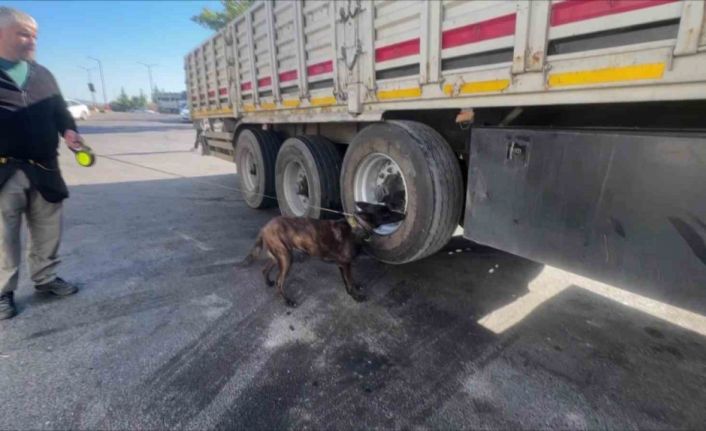 Dedektör köpeği araçta yaptığı aramada lastiklere tepki verdi. Narkotik polisleri tırın üzerinden lastiği sökerek içerisinden 89 pakette toplam 53 kilogram esrar ele geçirdi.