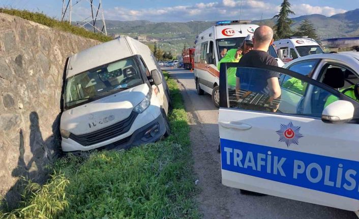 Samsun’da tırın sıkıştırdığı kapalı kasa minibüsün yoldan çıkarak su kanalına girdiği kaza maddi hasarla atlatıldı.