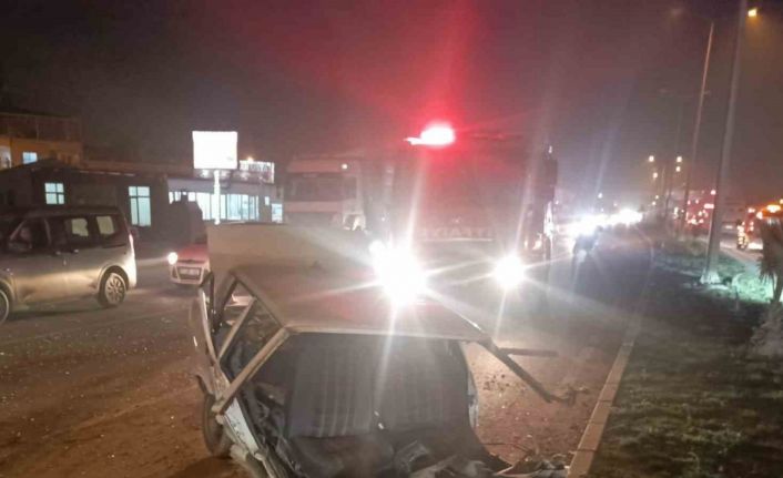 Hatay’da tırla çarpışıp ikiye bölünen Tofaş marka otomobilin sürücüsü yaralandı.