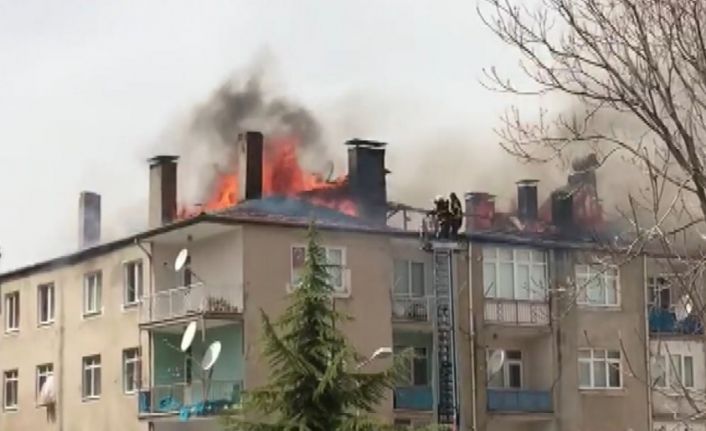 Tokat’ta bir apartmanda çatısı çıkan yangında alevlere teslim oldu.